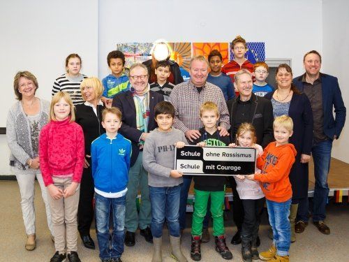 Am 14.November 2016 feierte die Schule mit Gästen dieses Ereignis. Horst Kläuser ist der Pate des Projekts und wird sich in Zukunft einmal im Jahr vergewissern, dass die Schule mit Mut, Freude und Toleranz Projekte gegen Rassismus durchführt. Der Bezirksbürgermeister Stefan Grote überreichte das Schild und Frau Tina-Désiree Jahn vom Kommunalen Integrationszentrum die Urkunde. Mit viel Engagement haben die beiden Lehrer Petra Schulz und Nico Pape das Projekt verwirklicht. Das Bergische Heimatlied als Willkommenslied umgedichtet und mit einer flotteren Melodie versehen wurde von den Schülerinnen und Schülern der Primarstufe vorgetragen. Der Förderverein, vertreten durch Gabriele Renery hat mit Flyern und anderen Beiträgen zur Verbreitung des Ereignisses in der Öffentlichkeit gesorgt.